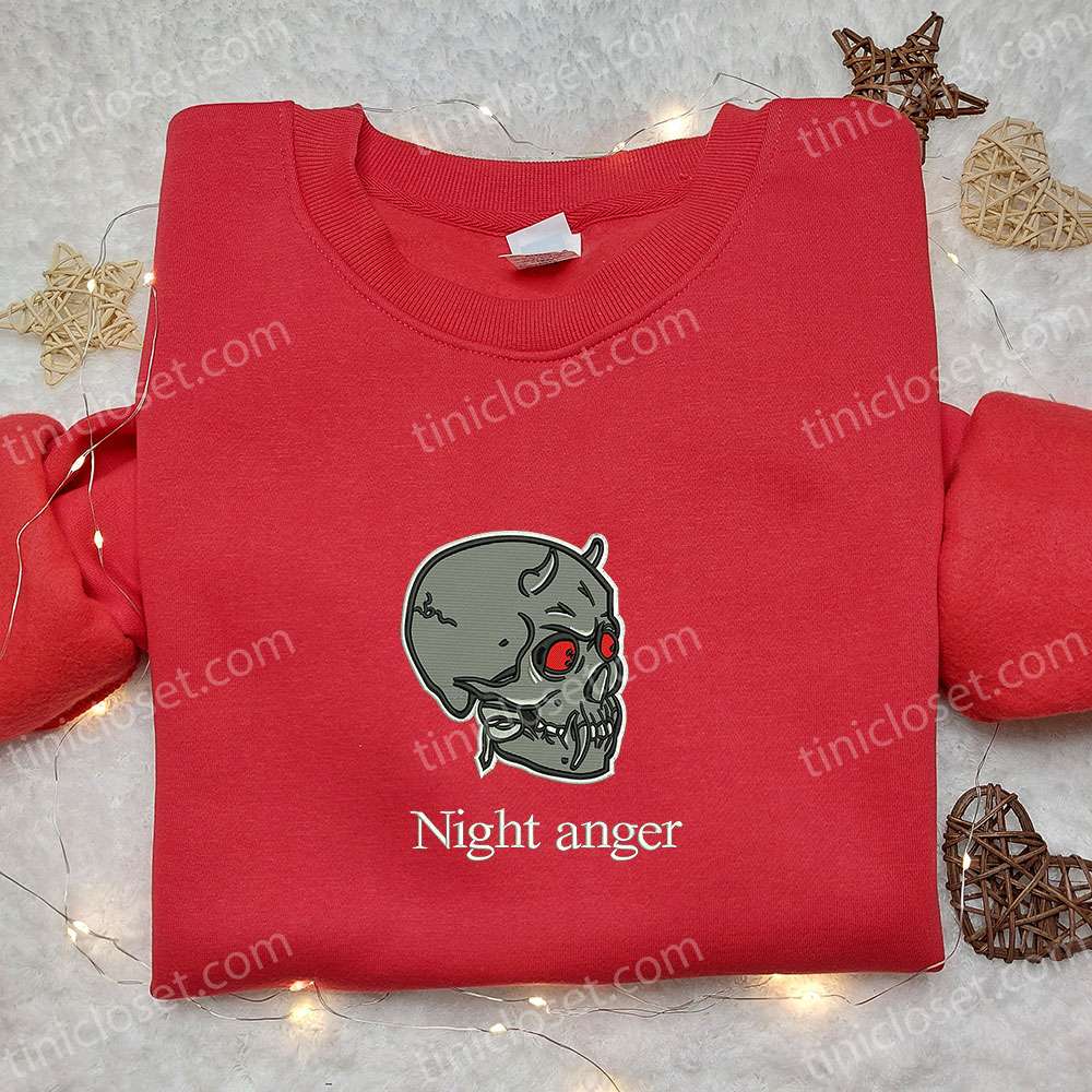 Night Anger Evil Skull Embroidered Sweatshirt, Halloween Embroidered Hoodie, Best Halloween Gift Ideas