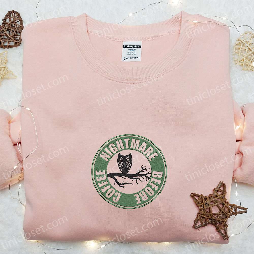 Nightmare Before Coffee Owl Embroidered Hoodie, Custom Embroidered T-shirt, Best Gift Ideas