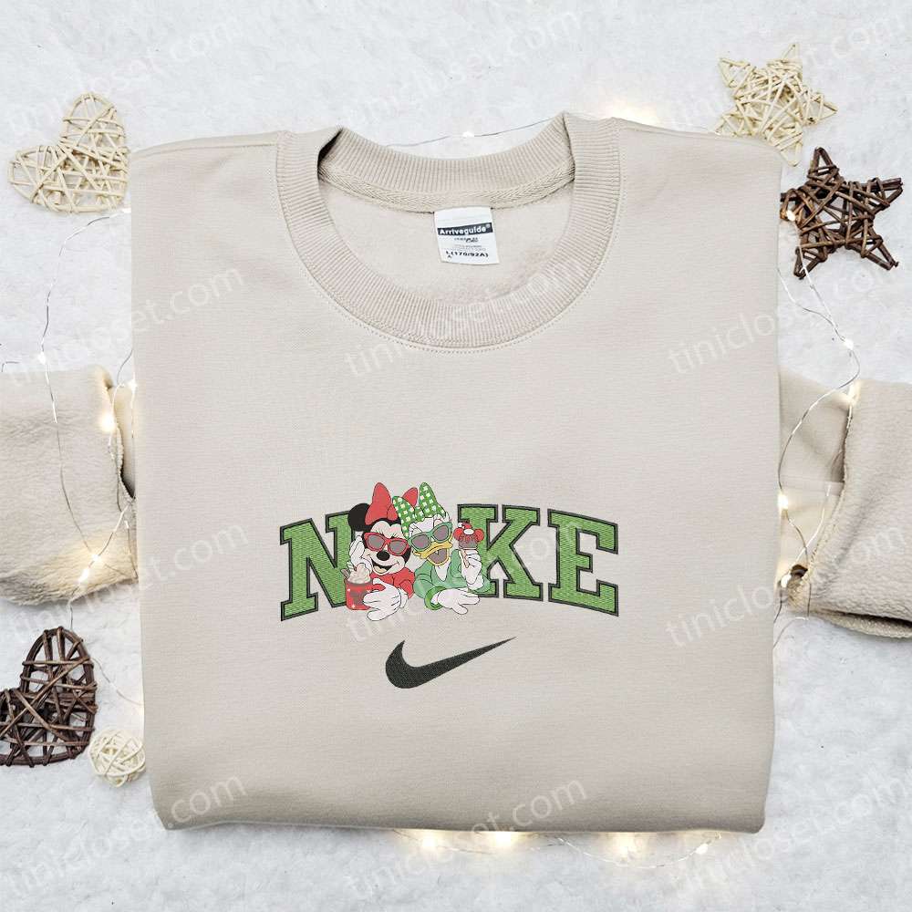 Nike Christmas X Minnie And Daisy Couple Embroidered Sweatshirt, Christmas Embroidered Shirt, Best Christmas Gift Ideas