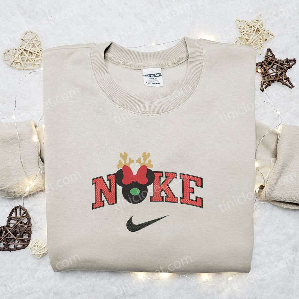 Nike Christmas X Minnie Reindeer Embroidered Sweatshirt, Christmas Embroidered Shirt, Best Christmas Gift Ideas