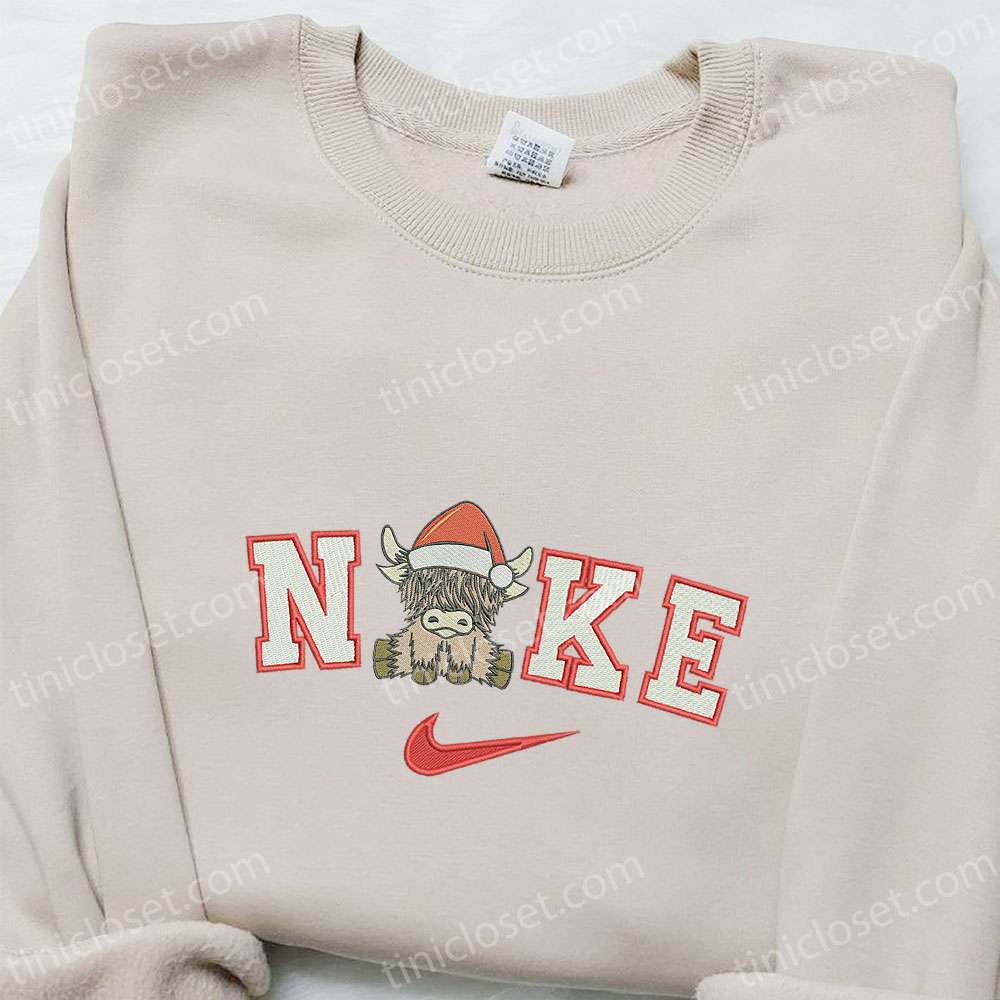 Nike Christmas X Pes Dst Highland Cow Embroidered Sweatshirt, Christmas Embroidered Shirt, Best Christmas Gift Ideas