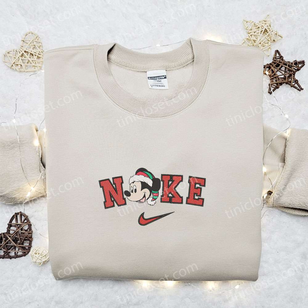 Nike Christmas X Retro Mickey Hat Embroidered Sweatshirt, Disney Characters Movie Merry Christmas Embroidered Shirt, Best Christmas Day Gift Ideas