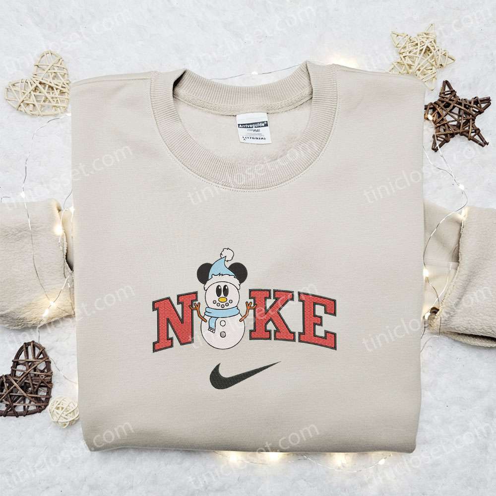 Nike Christmas X Snowman Mickey Embroidered Sweatshirt, Christmas Embroidered Shirt, Best Christmas Gift Ideas