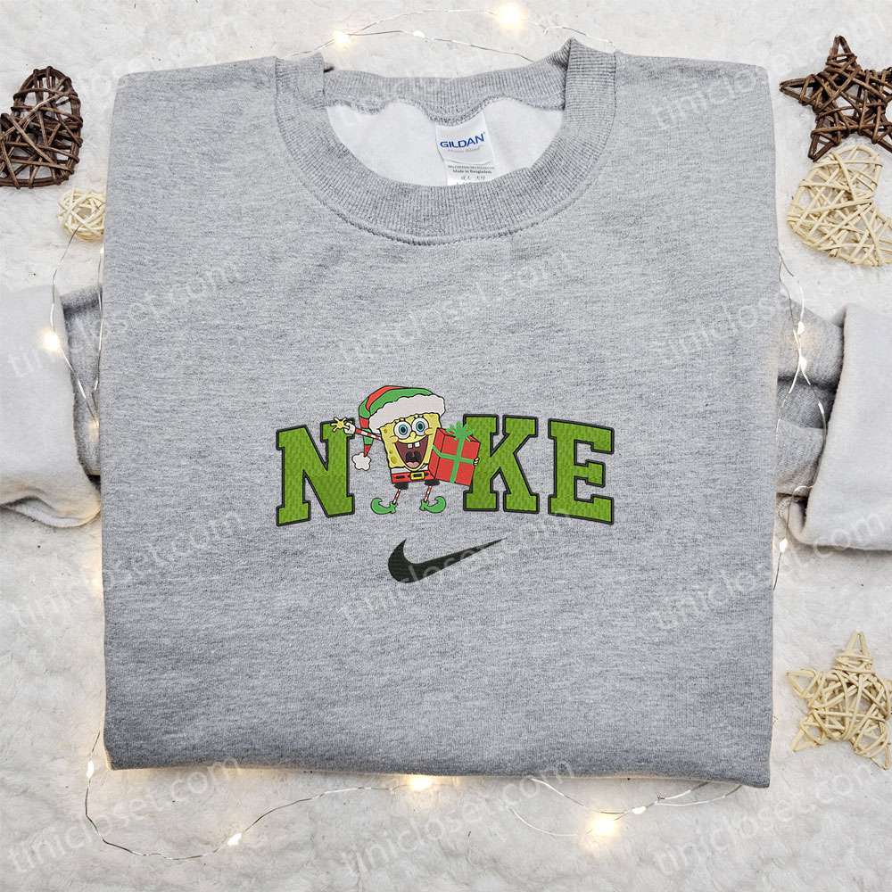 Nike Christmas X Spongebob Squarepants Embroidered Sweatshirt, Cartoon Christmas Embroidered Shirt, Best Christmas Gift Ideas