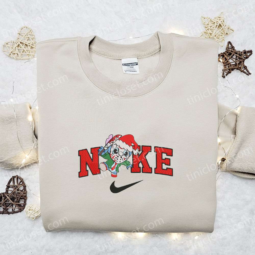 Nike Christmas X Stitch Jason Voorhees Embroidered Sweatshirt, Movie Christmas Embroidered Shirt, Best Christmas Gift Ideas