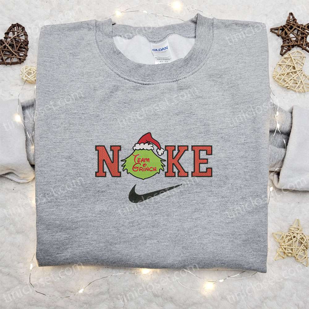 Nike Christmas X Team Grinch Head Embroidered Sweatshirt, Christmas Embroidered Shirt, Best Christmas Gift Ideas