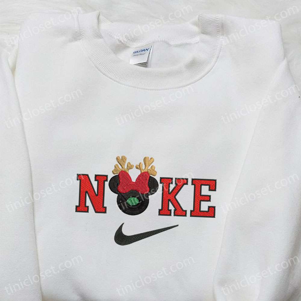 Nike Christmas X Vintage Santa Minnie Mouse Reindeer Cartoon Embroidered Sweatshirt, Disney Characters Movie Merry Christmas Embroidered Shirt, Best Christmas Day Gift Ideas