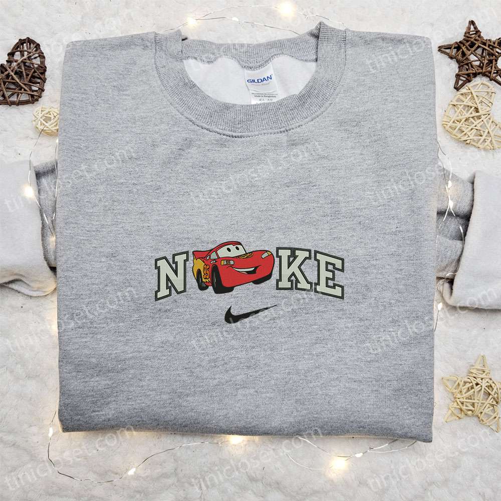 Nike Lightning Mcqueen Car Embroidered Sweatshirt, Disney Pixar Cars Embroidered Hoodie, Custom Nike Embroidered T-shirt