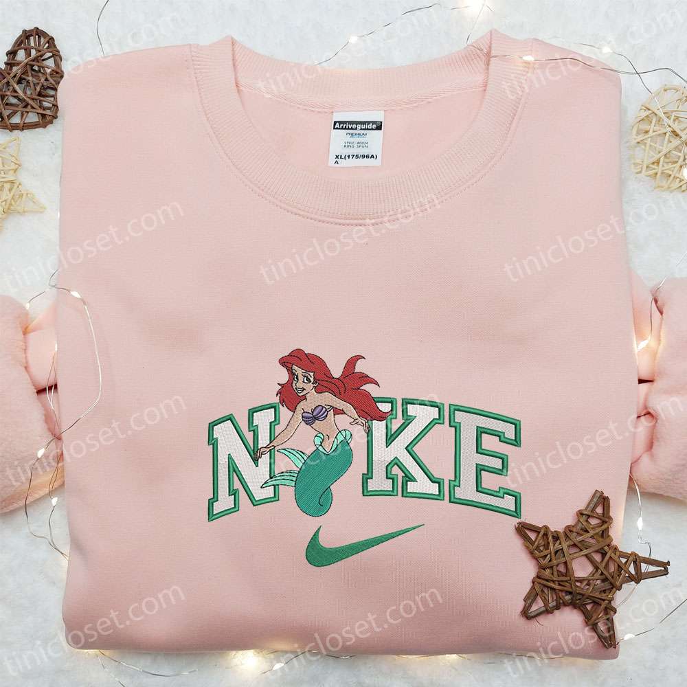 Nike X Ariel Princess Embroidered Sweatshirt, The Little Mermaid Disney Embroidered Shirt, Best Gift Ideas