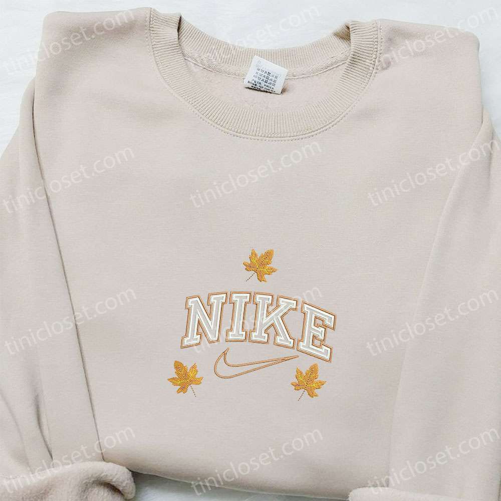 Nike X Autumn Leaves Embroidered Sweatshirt, Custom Embroiderd Hoodie, Best Gifts For Family