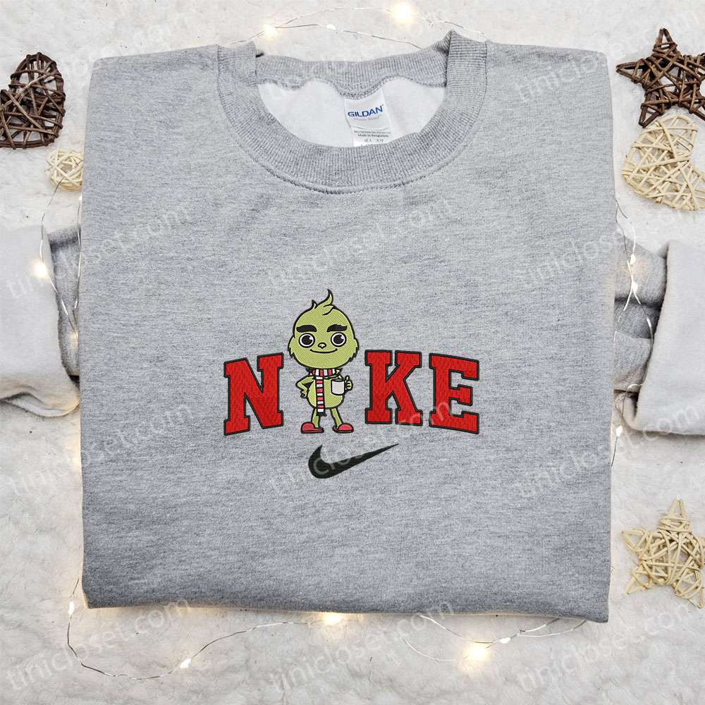 Nike X Baby Grinch Coffee Cup Embroidered Sweatshirt, Movie Christmas Embroidered Shirt, Best Christmas Gift Ideas