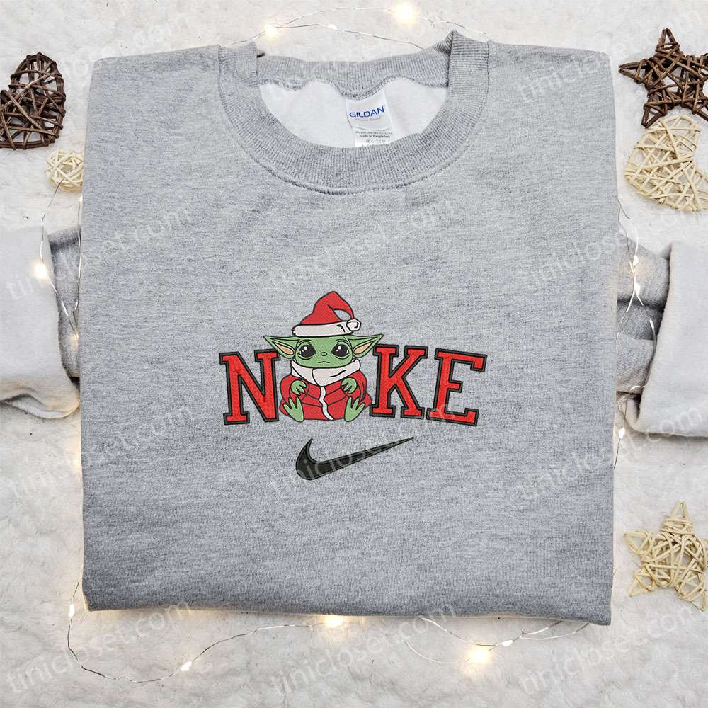 Nike X Baby Yoda Santa Claus Christmas Embroidered Sweatshirt, Movie Christmas Embroidered Shirt, Best Christmas Gift Ideas
