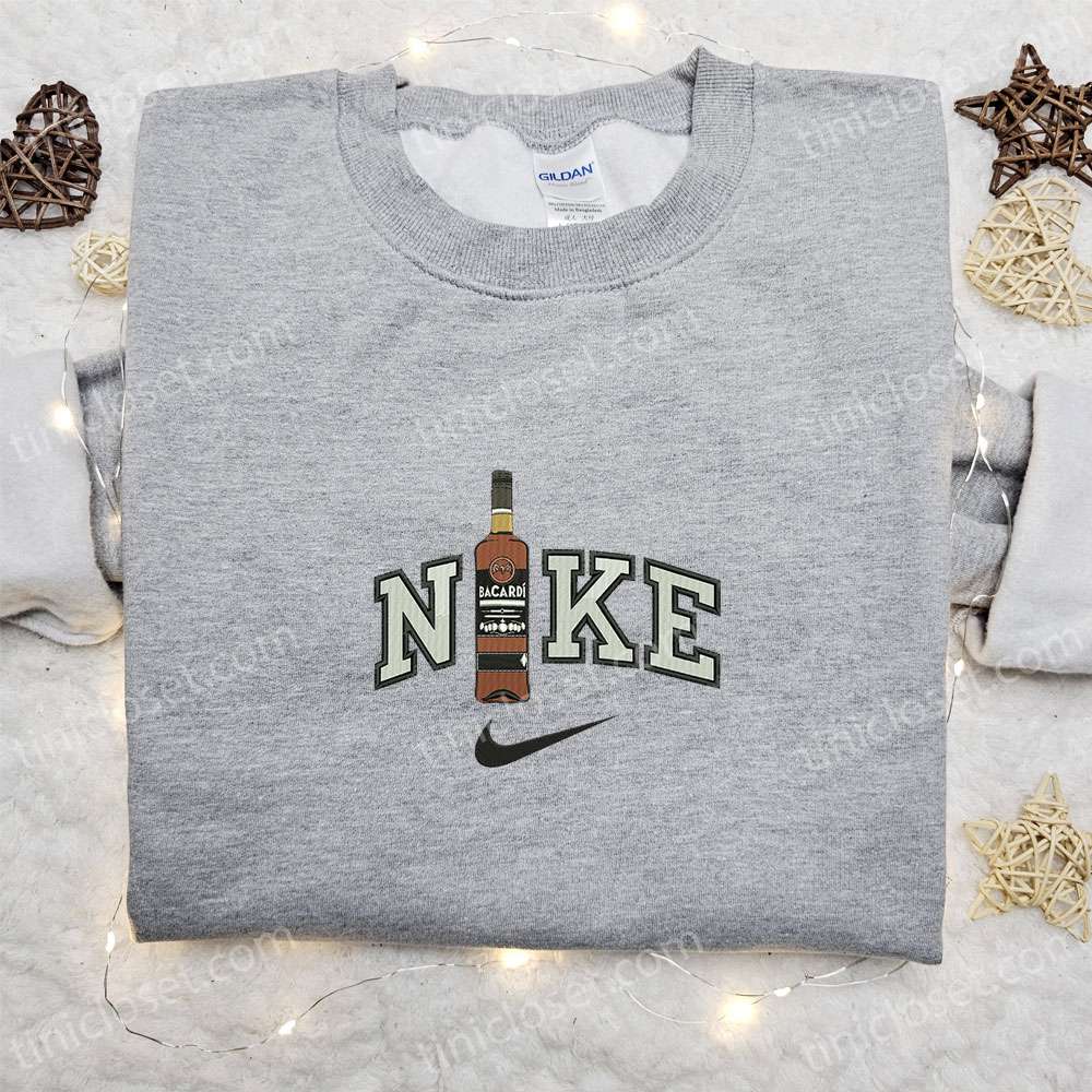 Nike X Bacardi Bottle Embroidered Sweatshirt, Favorite Drinks Embroidered Shirt, Best Birthday Gift Ideas For Family