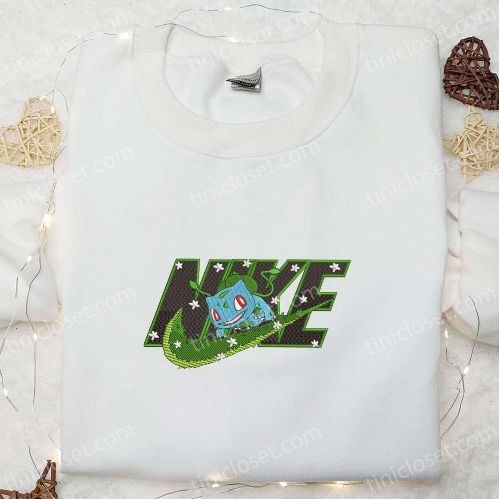 Nike X Bulbasaur Pokemon Embroidered Sweatshirt, Nike Inspired Embroidered Hoodie, Anime Embroidered T-shirt