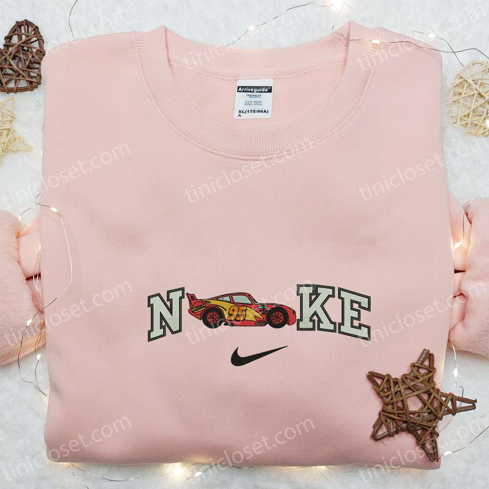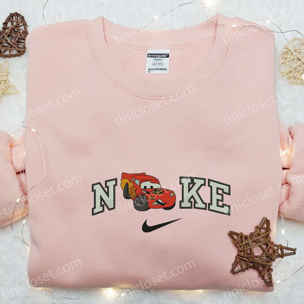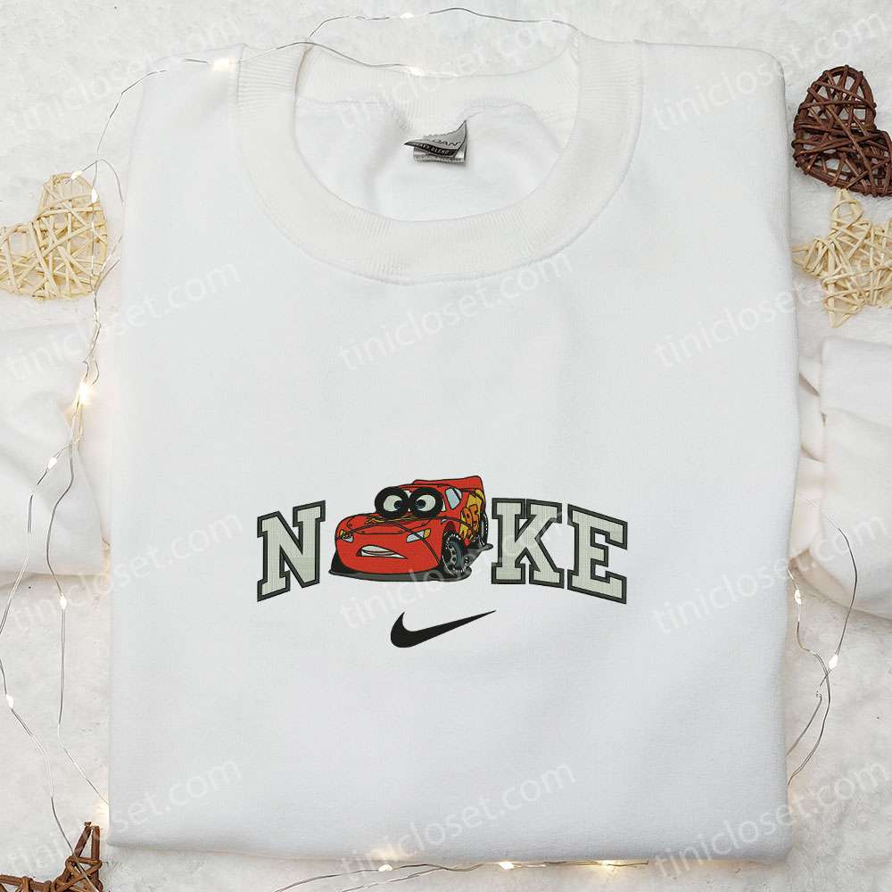 Nike X Cars Lightning Mcqueen Embroidered T-shirt, Disney Pixar Cars Embroidered Hoodie, Nike Inspired Embroidered Sweatshirt