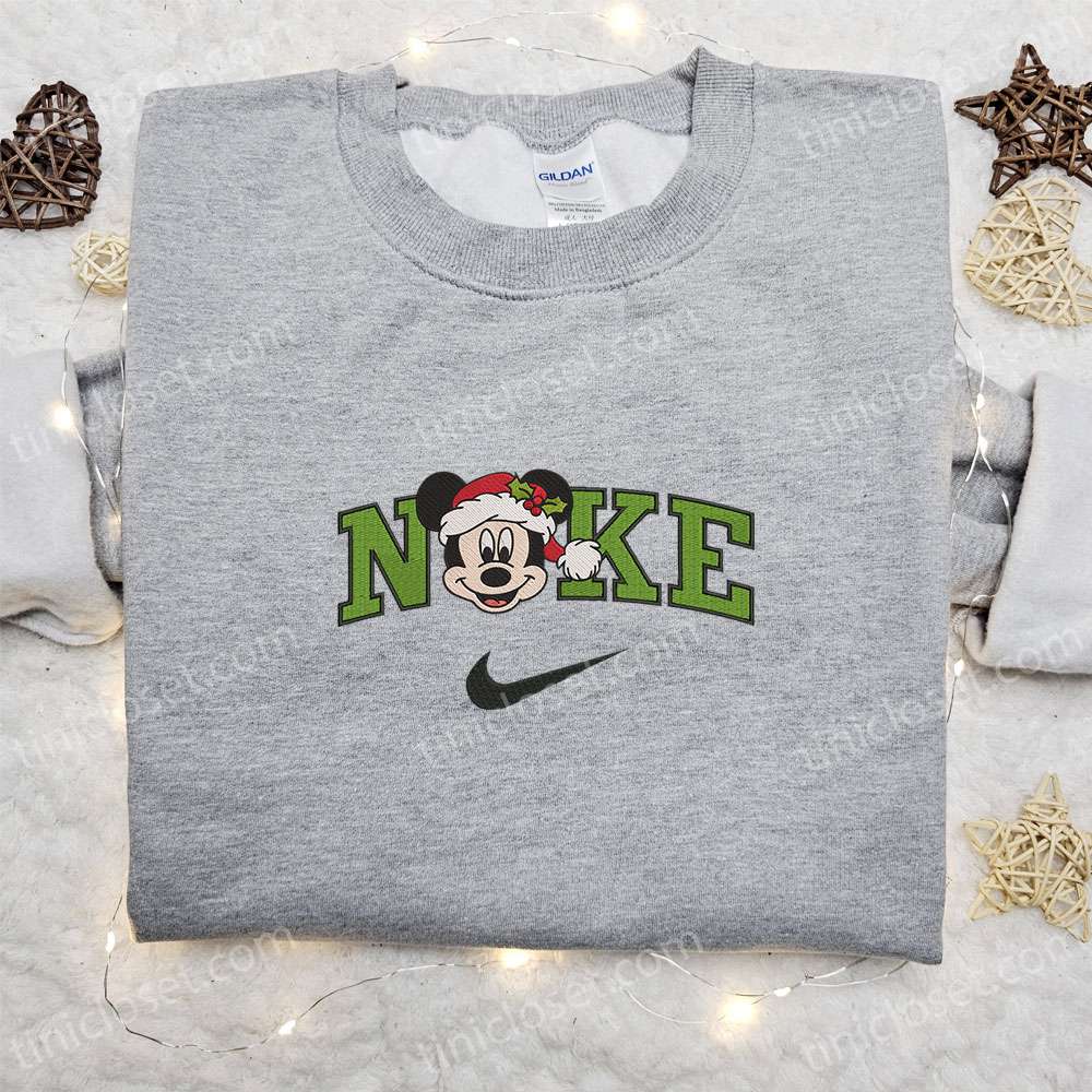 Nike X Christmas Mickey Santa Hat Cartoon Embroidered Sweatshirt, Disney Characters Movie Merry Christmas Embroidered Shirt, Best Christmas Day Gift Ideas