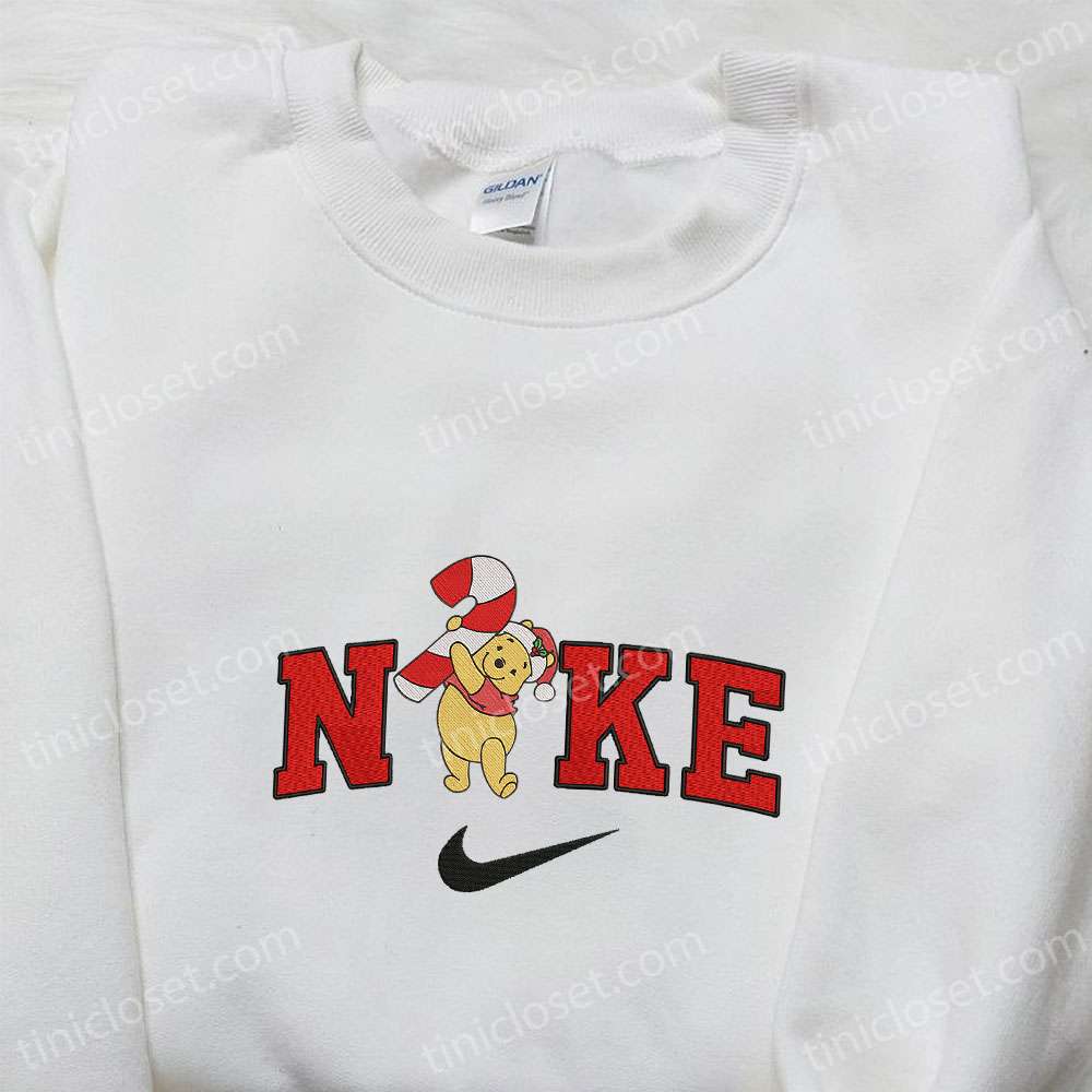 Nike X Christmas Pooh Embroidered Hoodie, Disney Characters Embroidered Sweatshirt, Nike Inspired Embroidered Shirt