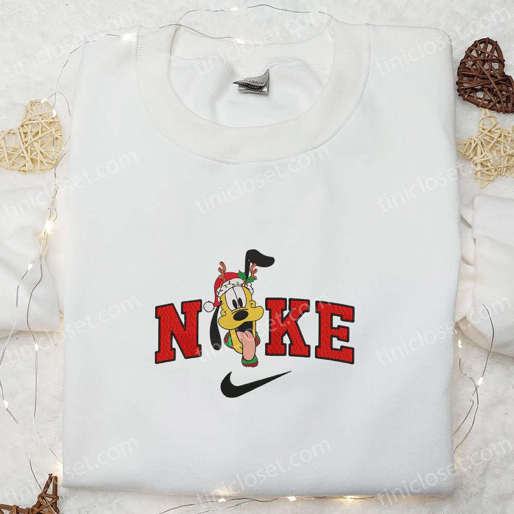 Nike X Christmas Pluto Dog Embroidered Sweatshirt, Disney Characters Embroidered Hoodie, Best Christmas Gifts For Family