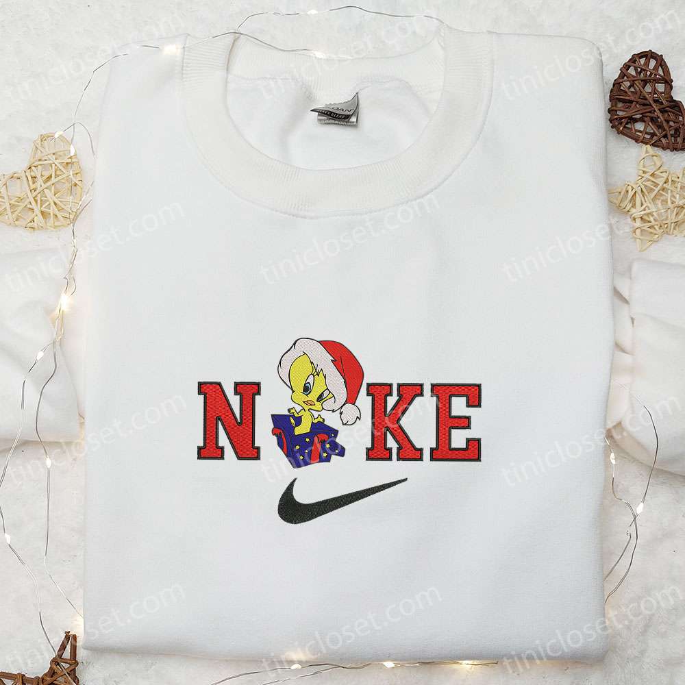 Nike X Christmas Tweety Bird Looney Tunes Embroidered Sweatshirt, Nike Inspired Embroidered T-shirt, Best Christmas Gifts For Family
