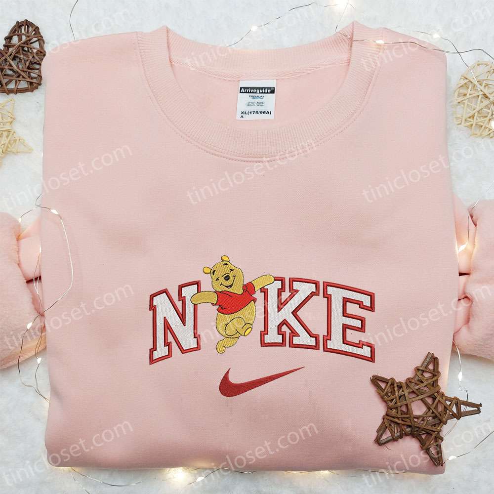 Nike X Disney Winnie Pooh Embroidered Sweatshirt, Cartoon Embroidered Hoodie, Nike Inspired Embroiderd T-shirt