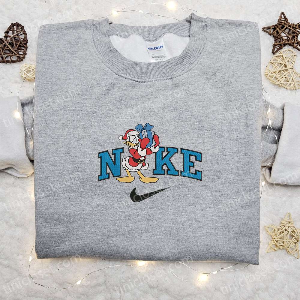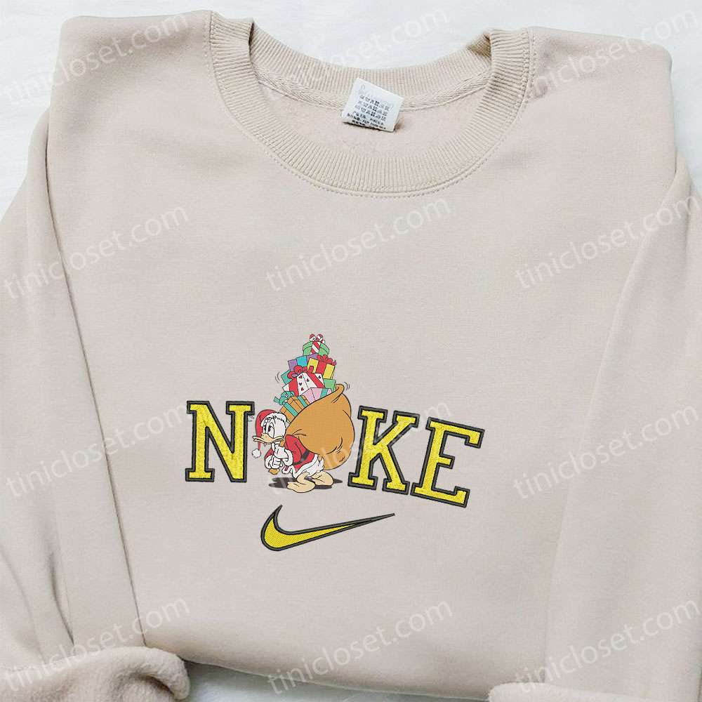 Nike X Donald Duck Christmas Gifts Disney Embroidered Sweatshirt, Cartoon Christmas Embroidered Shirt, Best Christmas Gift Ideas