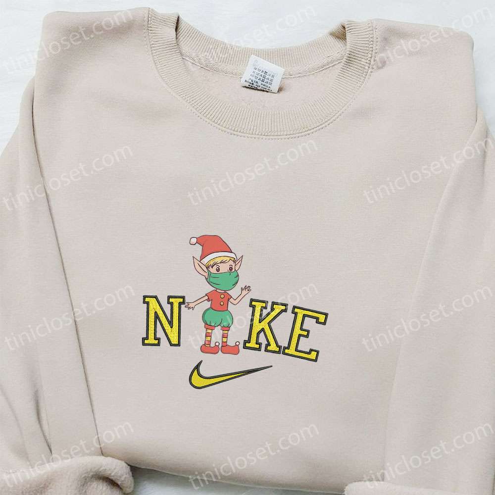 Nike X Elf Face Mask Christmas Embroidered Sweatshirt, Cartoon Christmas Embroidered Shirt, Best Christmas Gift Ideas