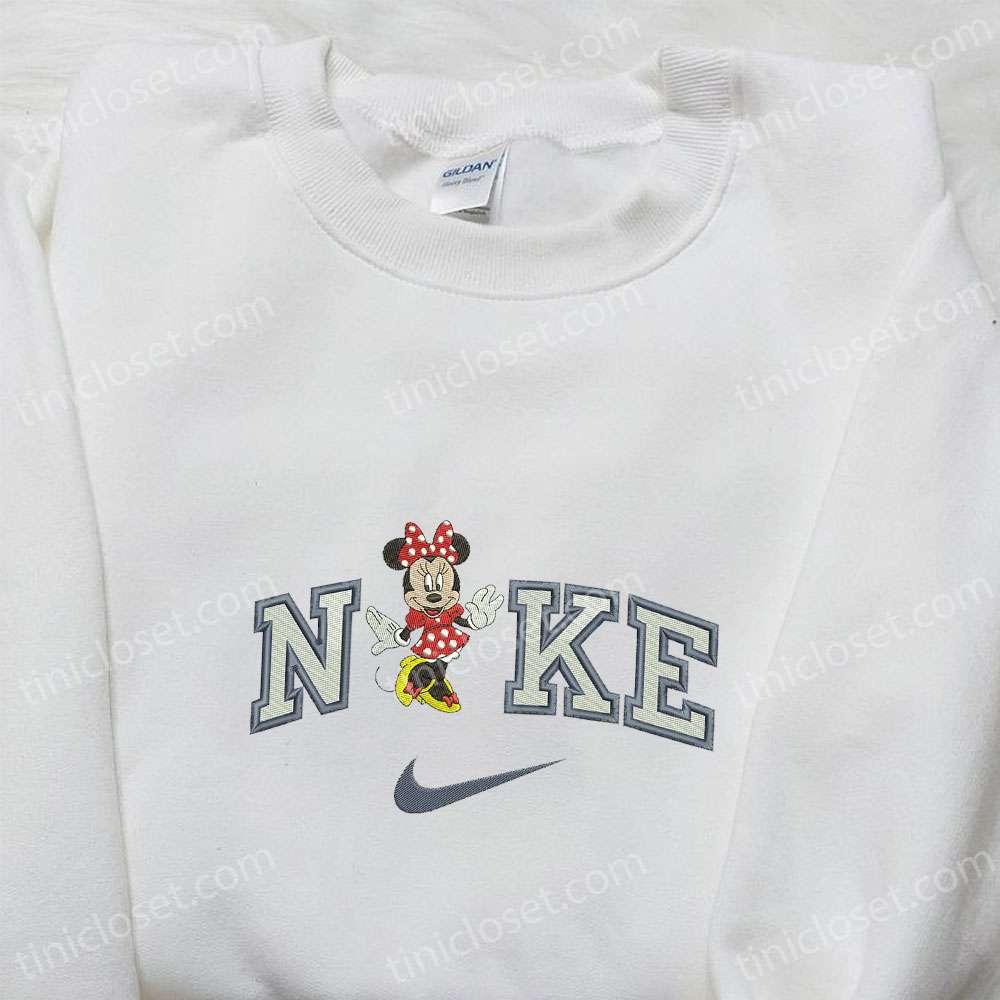 Nike X Minnie Mouse Embroidered Hoodie, Disney Characters Embroidered Sweatshirt, Nike Inspired Embroidered T-shirt