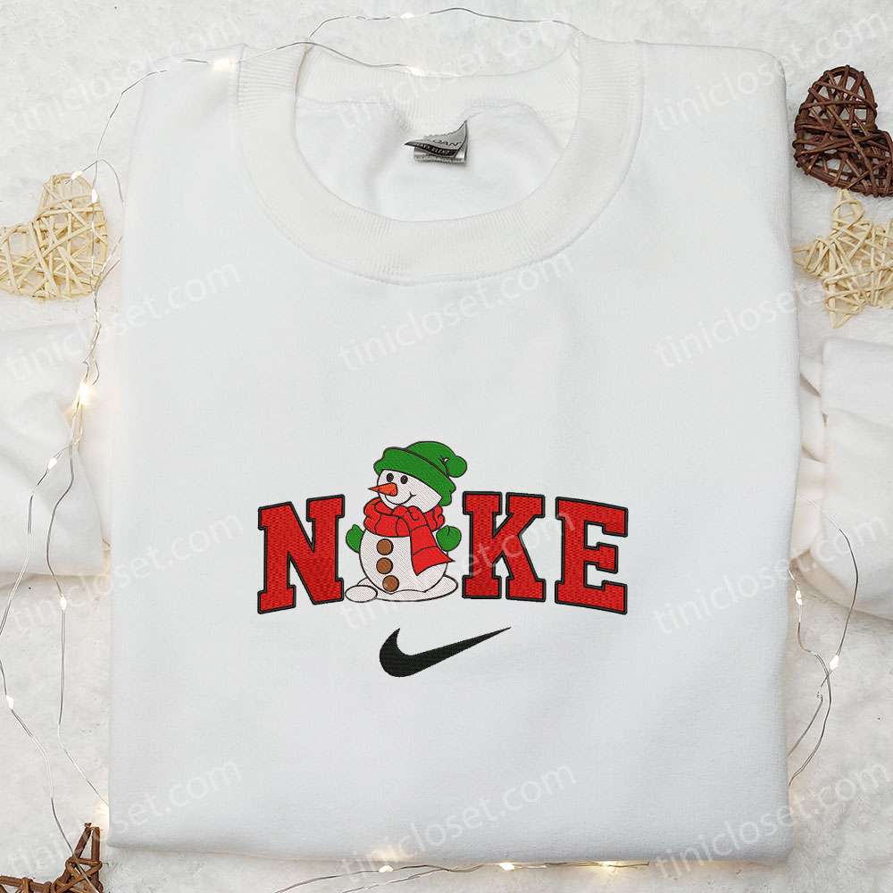 Nike X Snowman Embroidered Sweatshirt, Christmas Embroidered Hoodie, Custom Nike Embroidered T-shirt