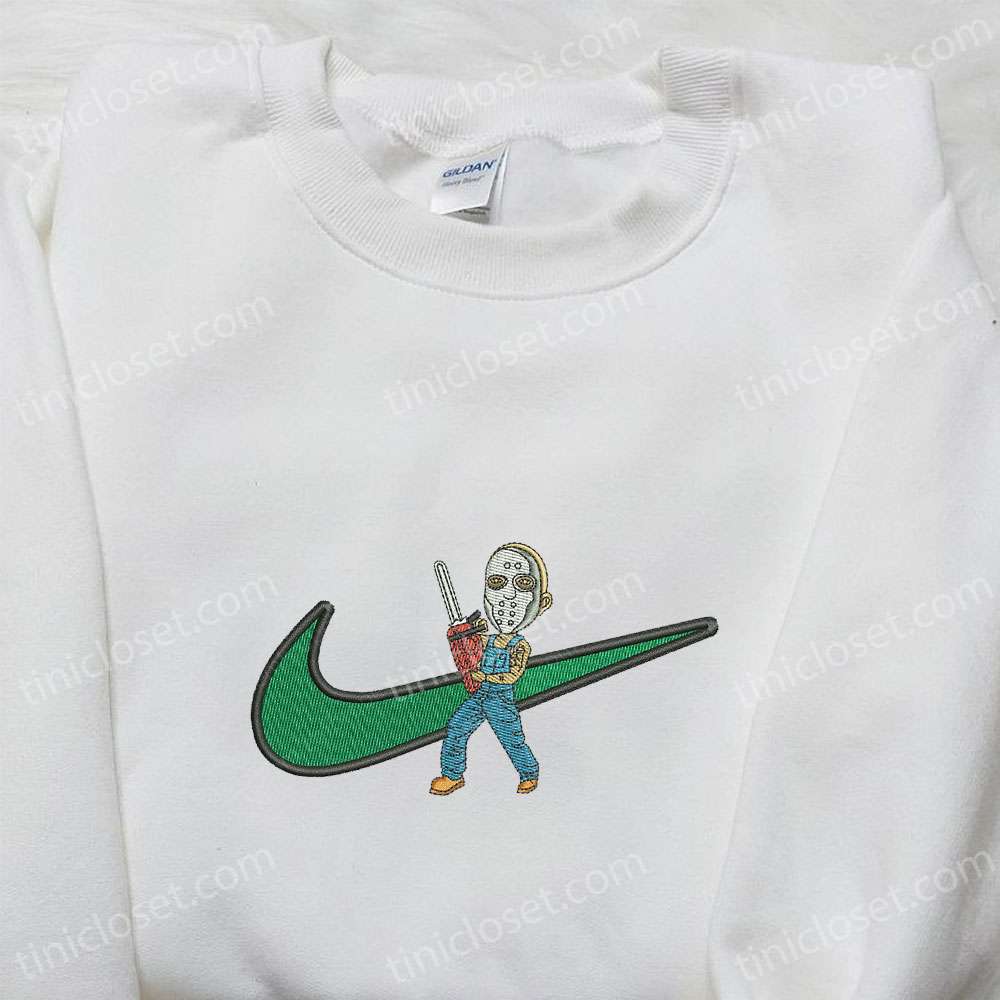 Nike X Spooky Jason Embroidered Shirt, Nike Halloween Embroidered Sweatshirt, Horror Movie Characters Embroidered Hoodie
