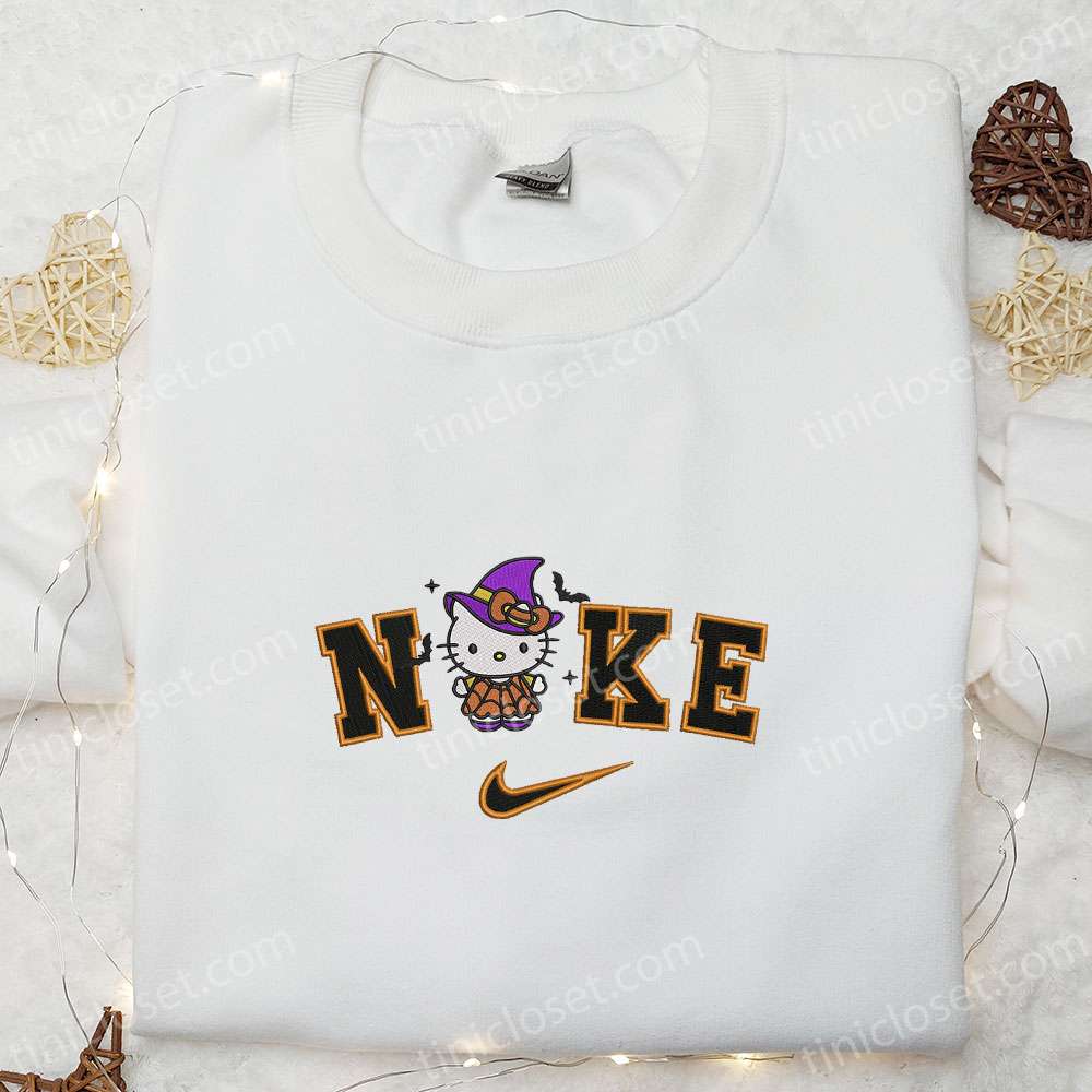 Nike X Spooky Witch Hello Kitty Embroidered Shirt, Nike Halloween Embroidered Sweatshirt, Cute Anime Embroidered Hoodie