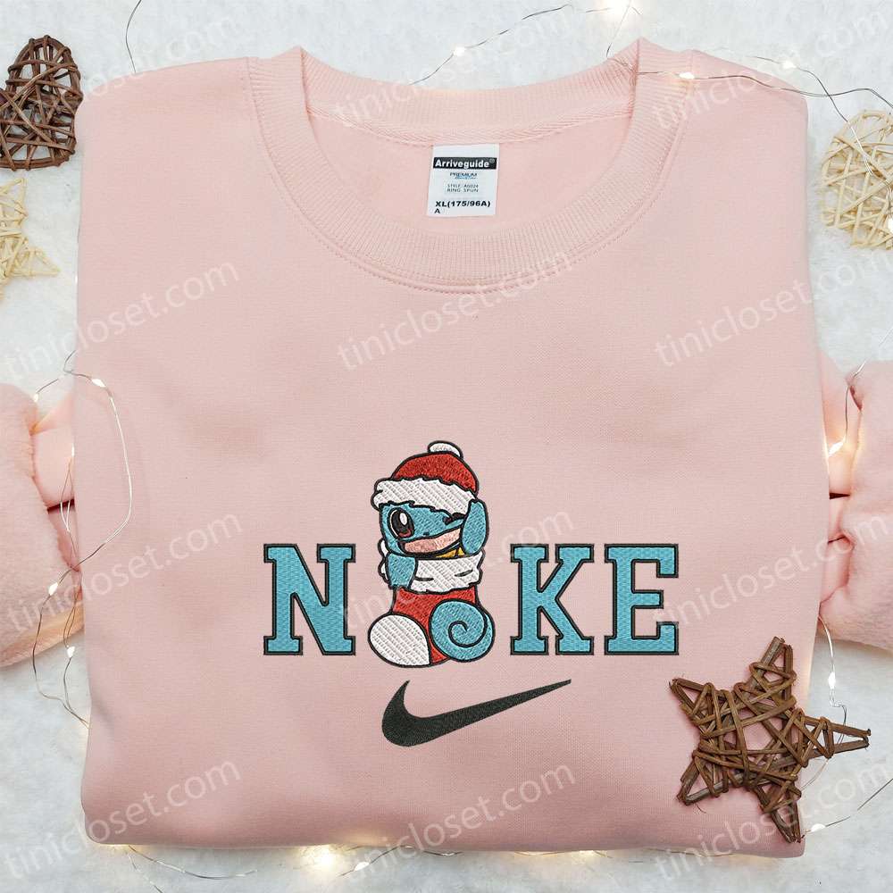 Nike X Squirtle Xmas Embroidered Shirt, Pokemon Embroidered Hoodie, Nike Inspired Embroidered T-shirt