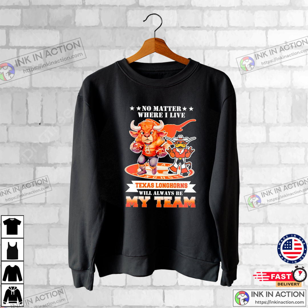 No Matter Where I Live Texas Longhorns Will Always Be My Team Mascot Logo, Texas Football Apparel