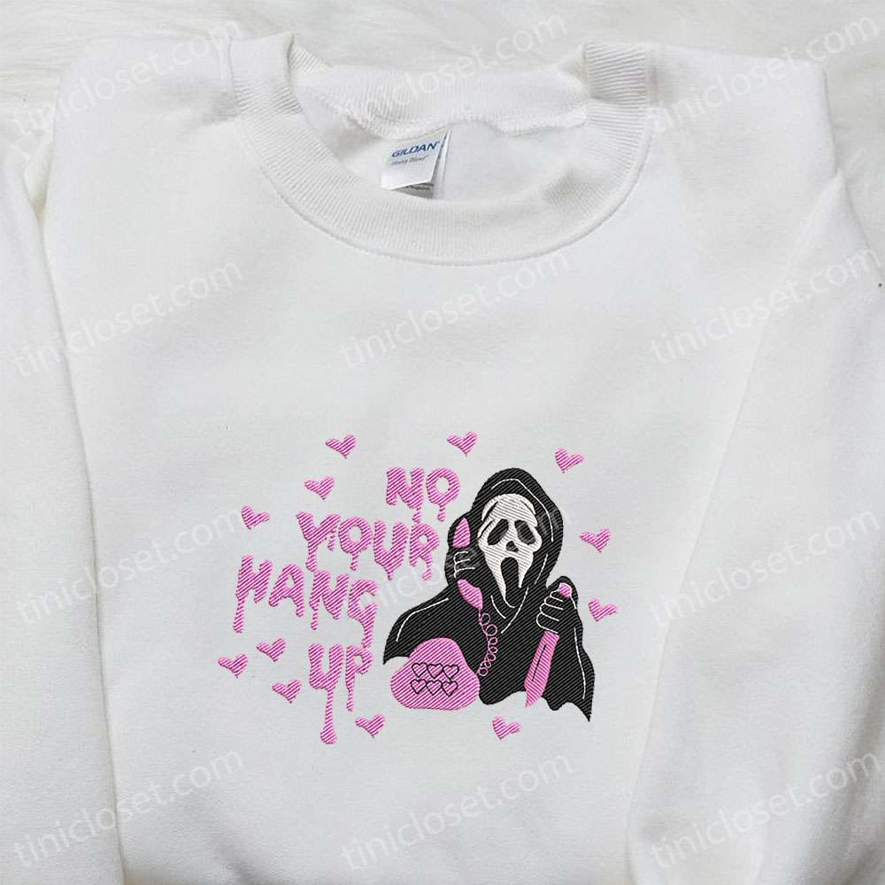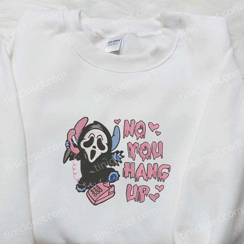 No You Hang Up Ghostface Calling Embroidered Shirt, Scream Movie Embroidered Hoodie, Best Gift Ideas