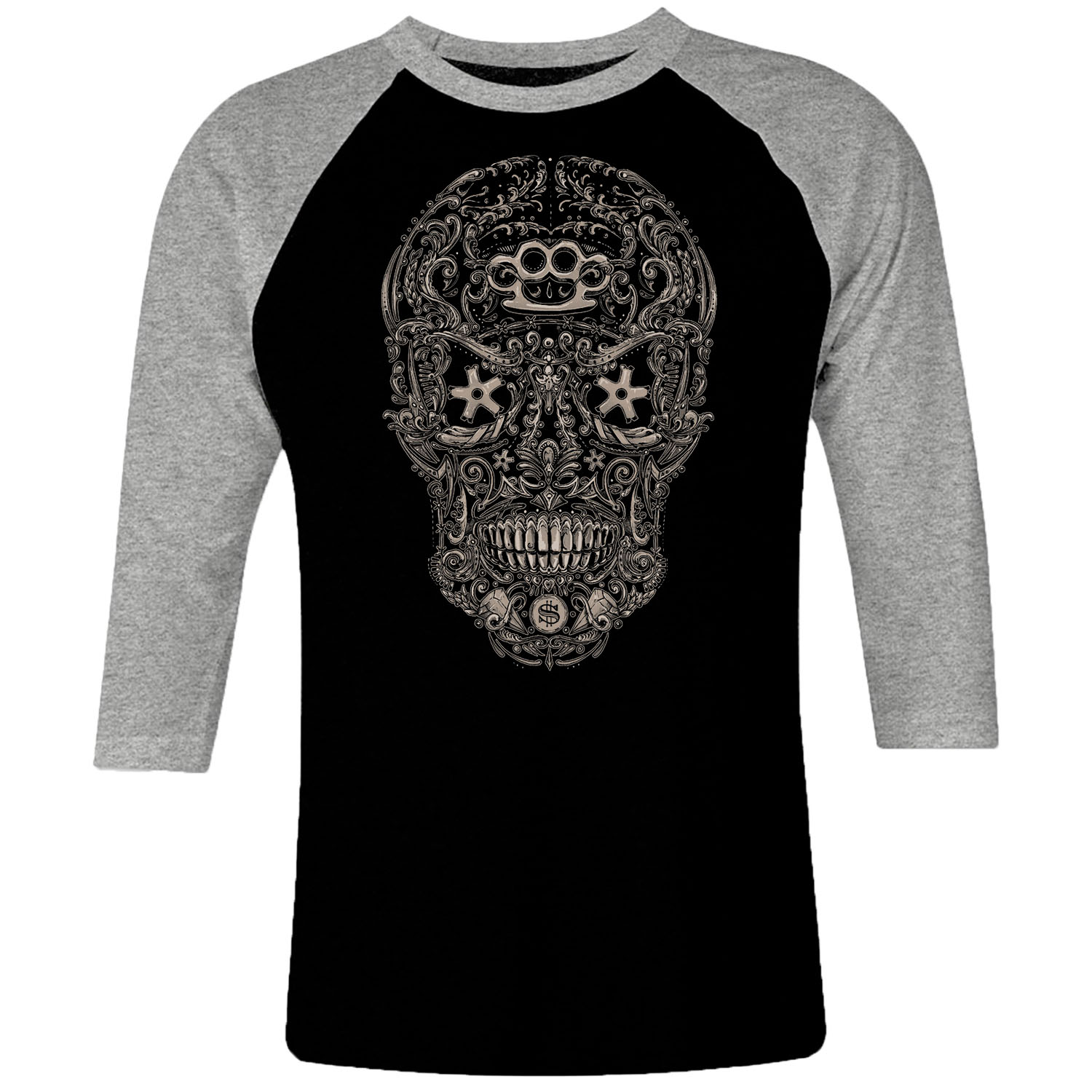 1cp I 025 Skull Raglan T Shirt 3 4 Sleeve Rock Band Metal Retro Punk Vintage Concert Cotton Design Handmade Logo New