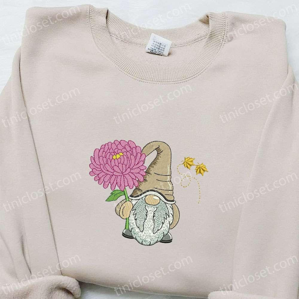 November Chrysanthemum Flower Gnome Embroidered Shirt, Christmas Embroidered Hoodie, Best Gifts For Family