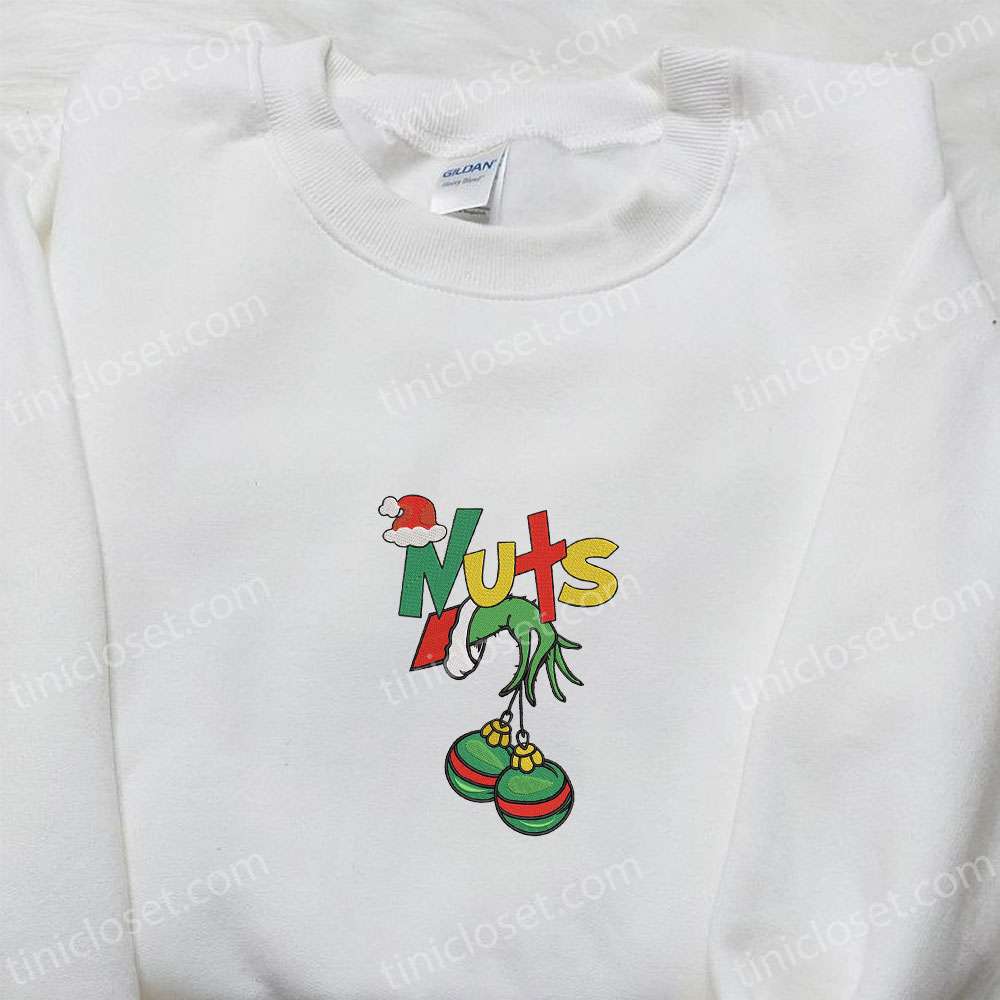 Nuts Grinch Hand Embroidered Shirt, Christmas Embroidered Hoodie, Best Gifts For Family