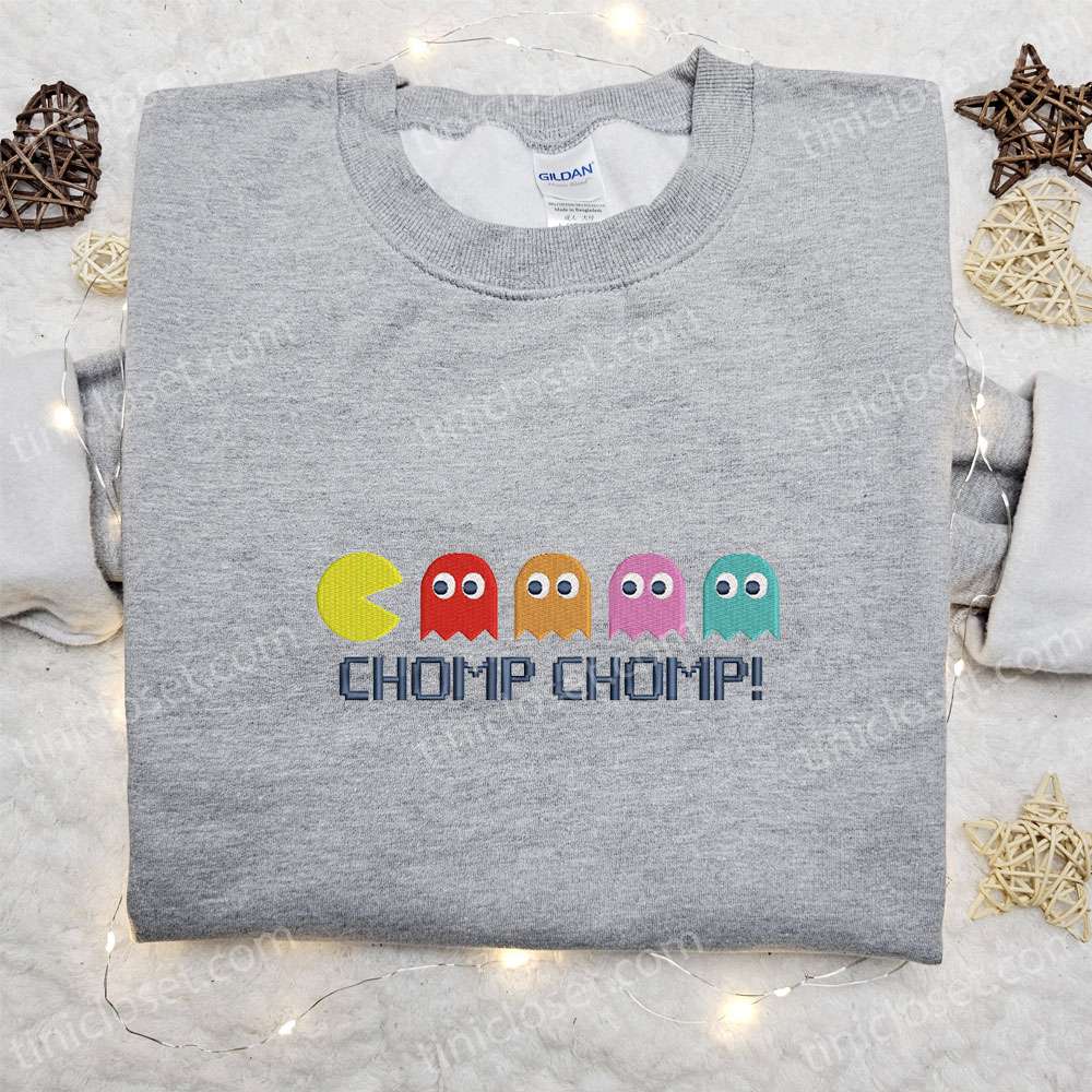 Pac Man Ghosts Chomp Chomp Embroidered Sweatshirt, Video Game Characters Embroidered Hoodie, Best Halloween Gift Ideas