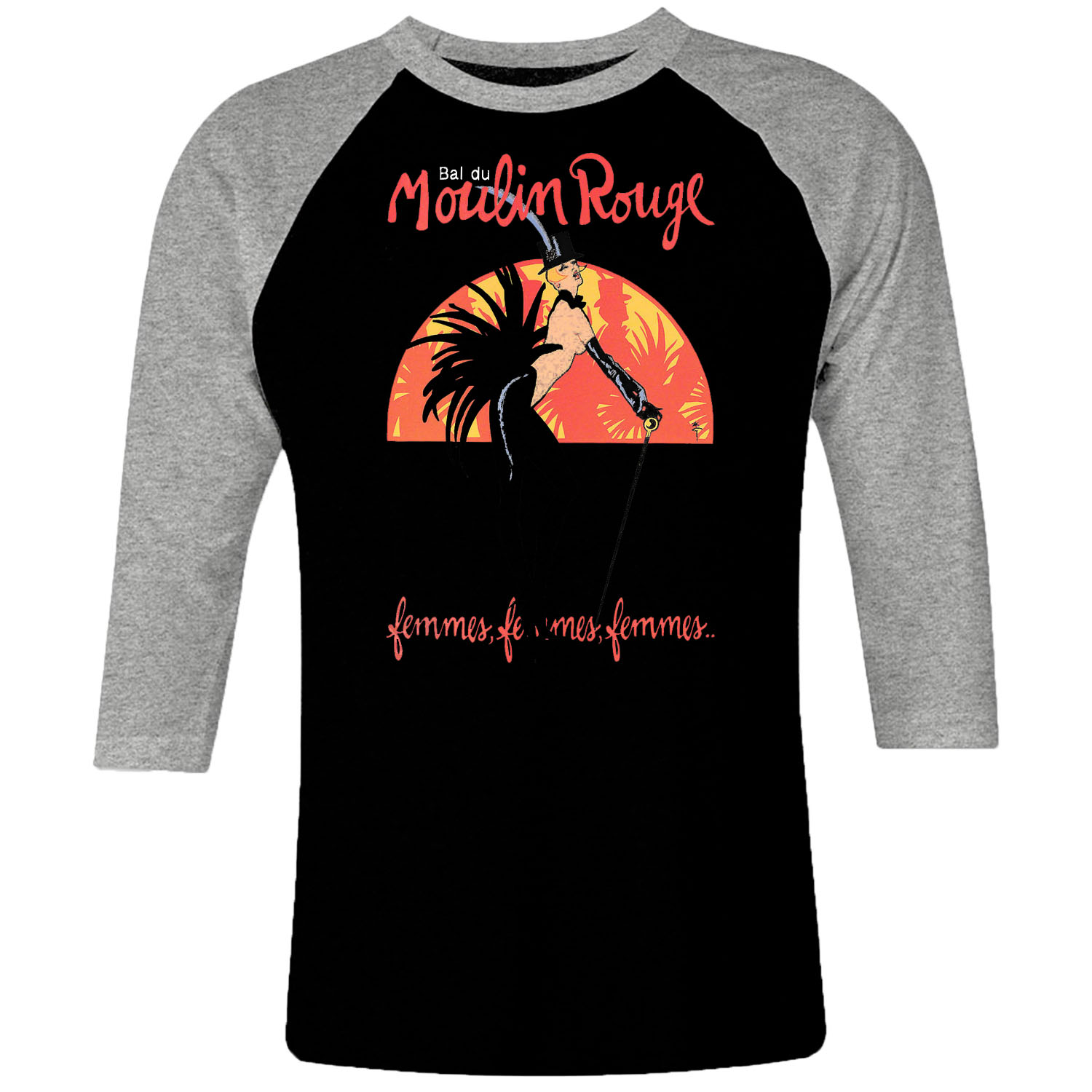1cp I 078 Vintage Moulin Rouge Poster Raglan T Shirt 3 4 Sleeve Retro Vintage Tshirts Shirt T Shirts For Men Classic Cotton Design Handmade Logo New