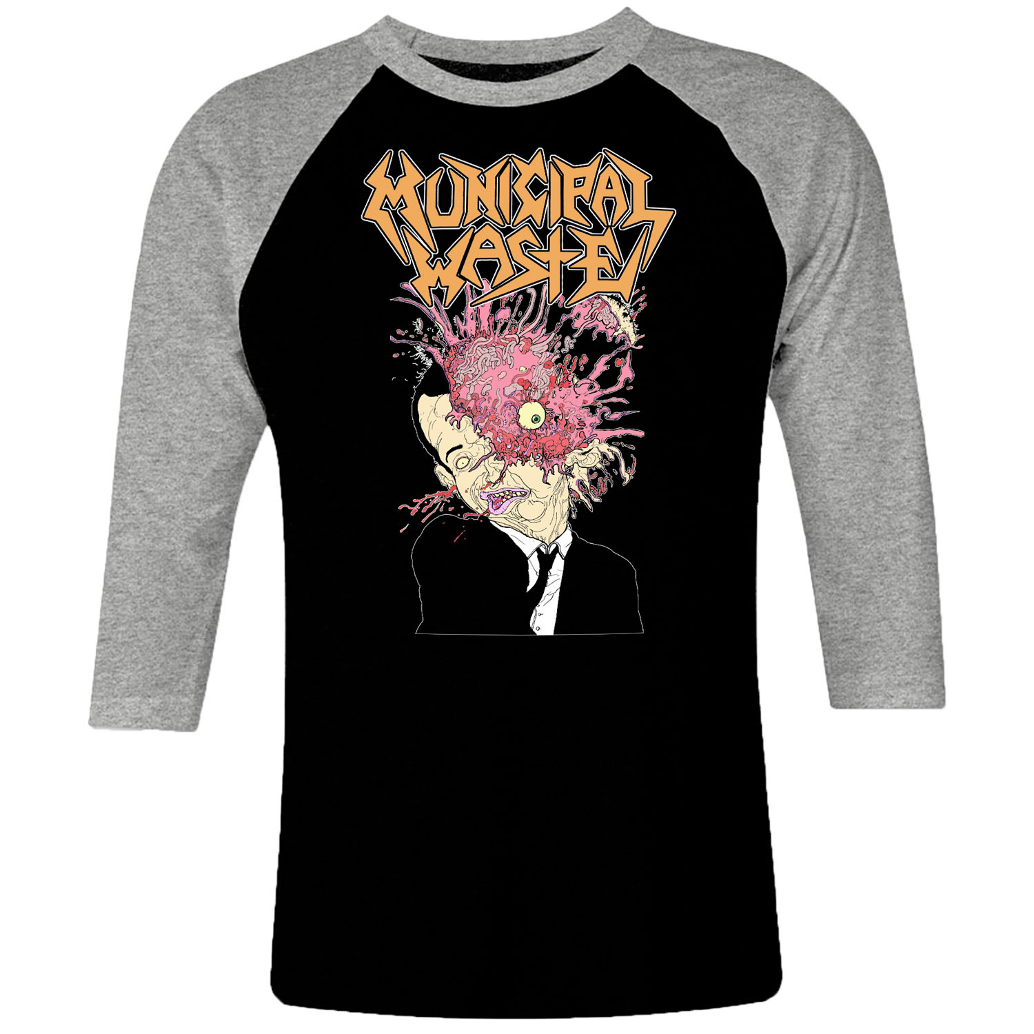 1cp I 079 Municipal Waste Raglan T Shirt 3 4 Sleeve Rock Band Metal Retro Punk Vintage Concert Cotton Design Handmade Logo New