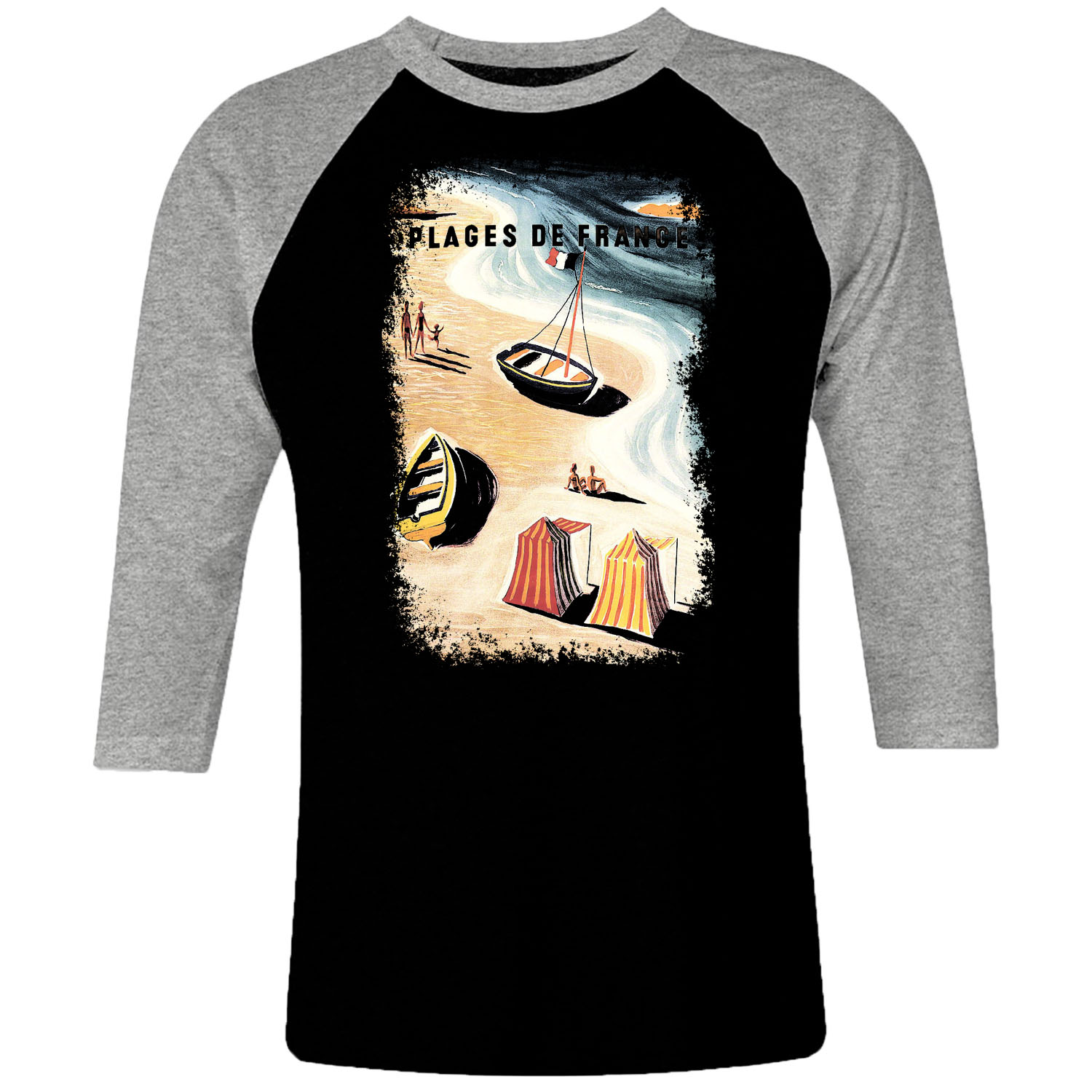 1cp I 080 Plage De France Poster Raglan T Shirt 3 4 Sleeve Retro Vintage Tshirts Shirt T Shirts For Men Classic Cotton Design Handmade Logo New