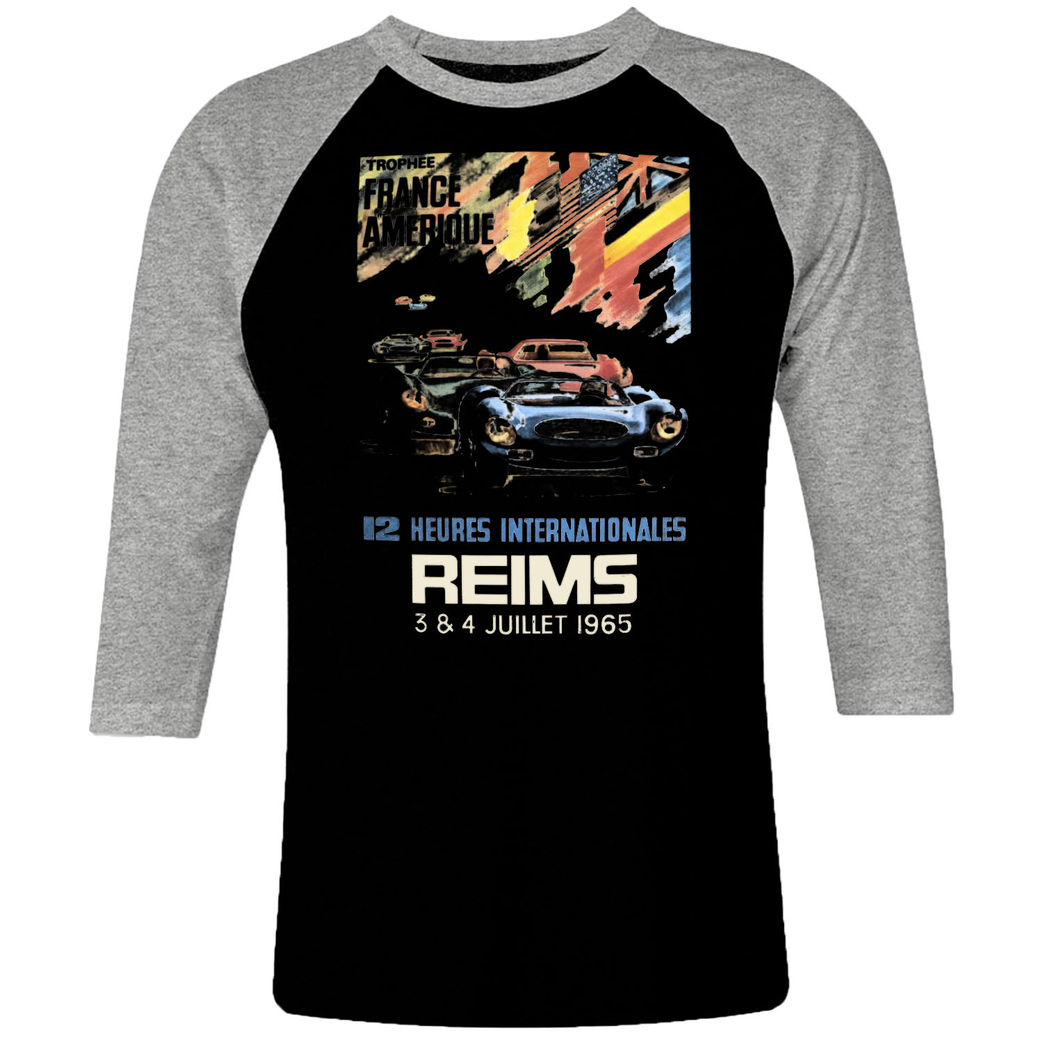 1cp I 084 Trophee France Amerique 12 Heures Internationales Reims 1965 Race Car Raglan T Shirt 3 4 Sleeve Retro Vintage Tshirts Shirt T Shirts For Men Classic Cotton Design Handmade Logo New