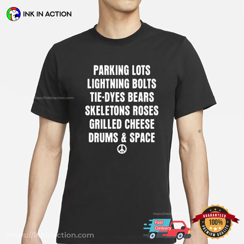 Parking Lots Lightning Bolts Tie Dyes Bears Skeletons Roses Grilled Cheese Drums And Space T-shirt