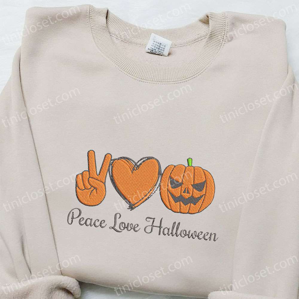 Peace Love Halloween Embroidered Sweatshirt, Cute Halloween Embroidered Hoodie, Best Halloween Gift Ideas