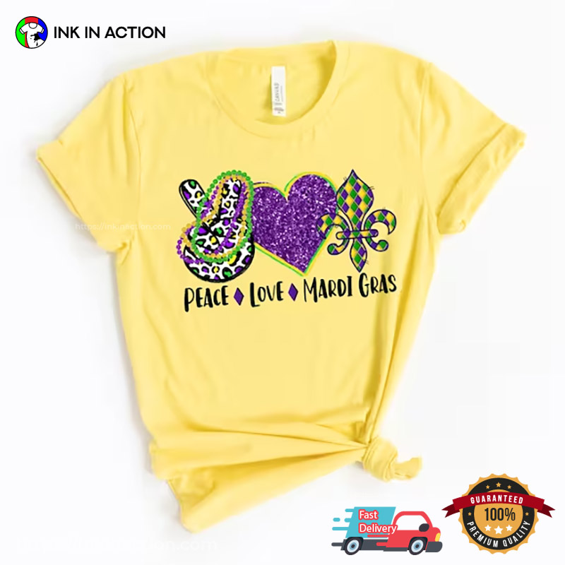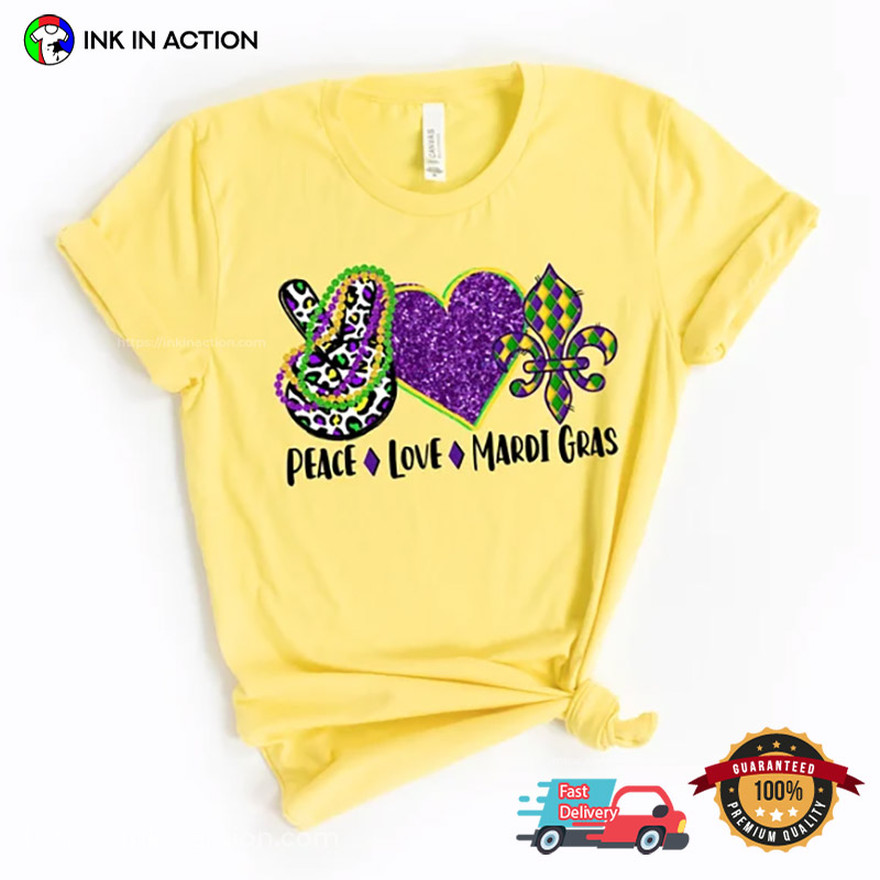 Peace Love Mardi Gras Glitter Art T-shirt, Mardi Gra Tuesday Apparel