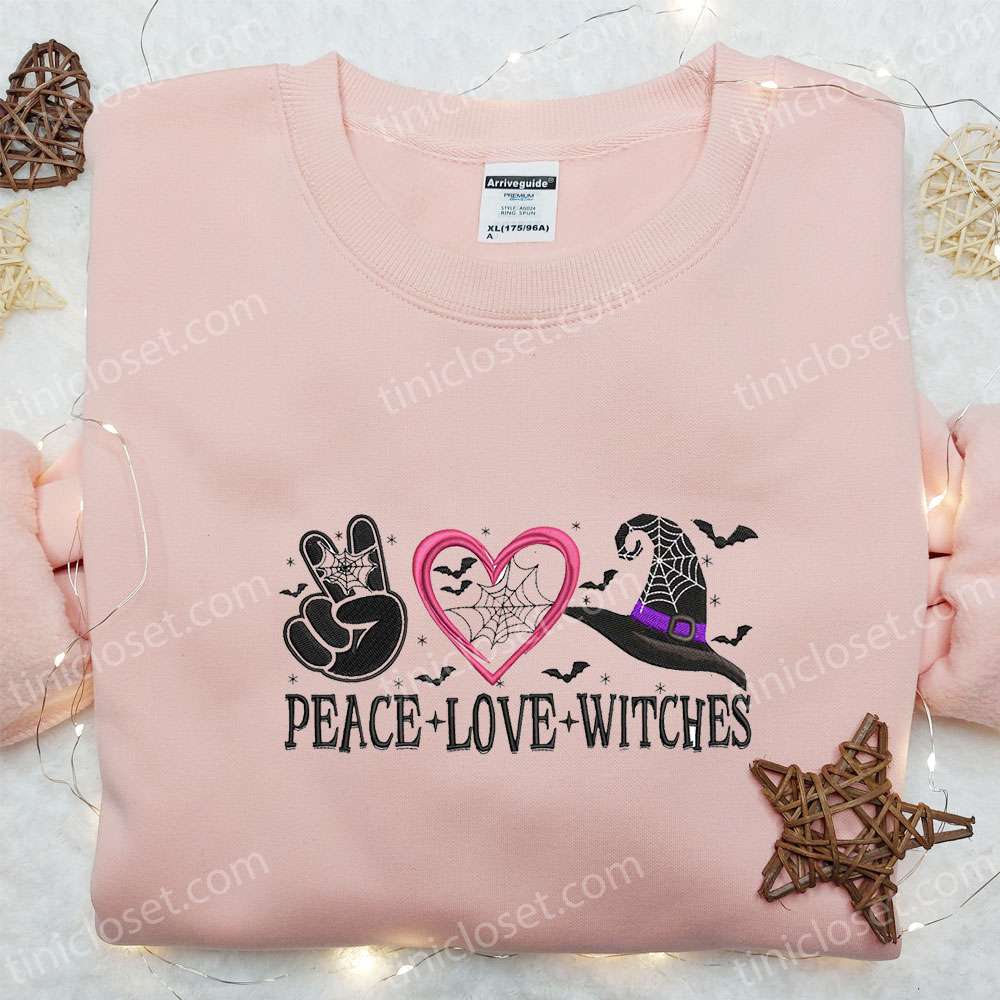 Peace Love Witches Embroidered Sweatshirt, Halloween Embroidered Hoodie, Best Halloween Gift Ideas