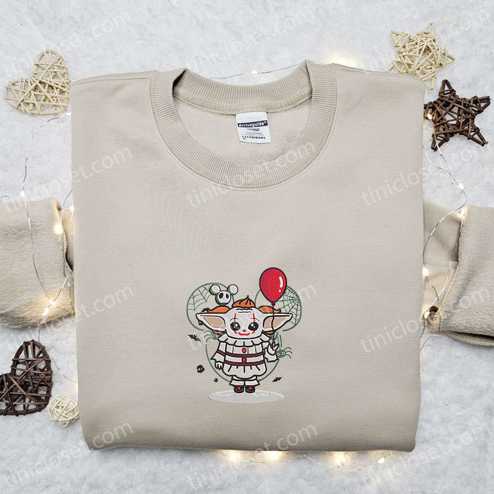 Pennywise Baby Yoda Embroidered T-shirt, It Horror Movie Embroidered Shirt, Best Gift Ideas