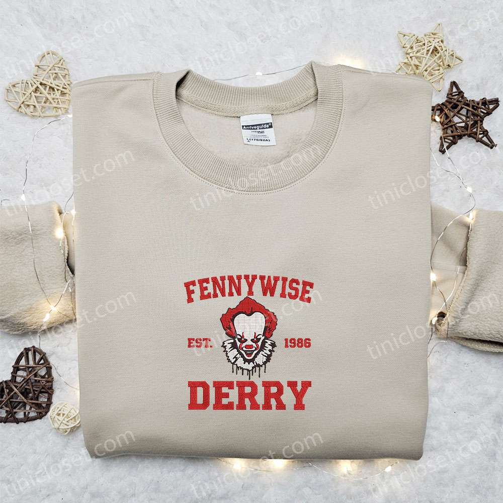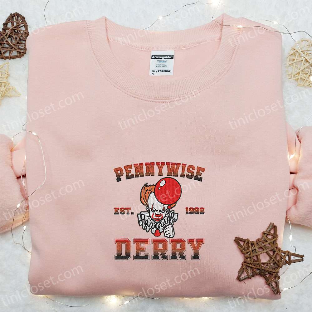 Pennywise Derry Embroidered Shirt, It Horror Movie Embroidered T-shirt, Best Gift Ideas