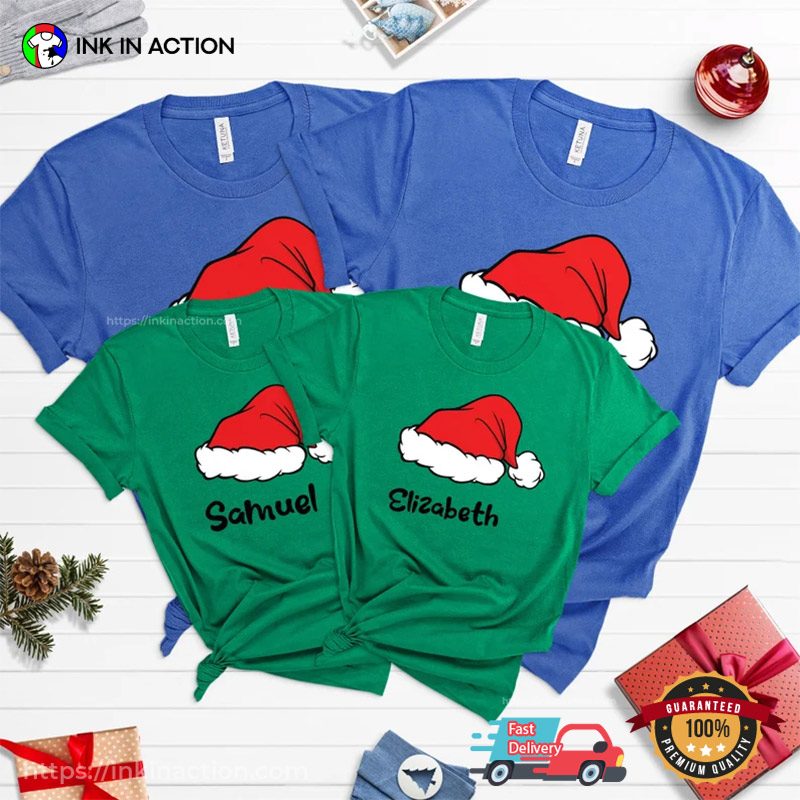 Personalized Family Christmas Santa Hat T-shirt