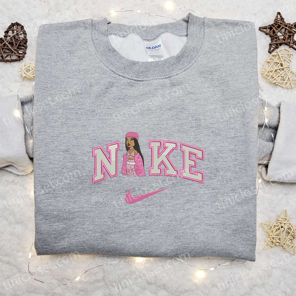 Pink Bratz Doll X Nike Swoosh Embroidered Sweatshirt, Custom Nike Embroidered Hoodie, Best Gifts For Family