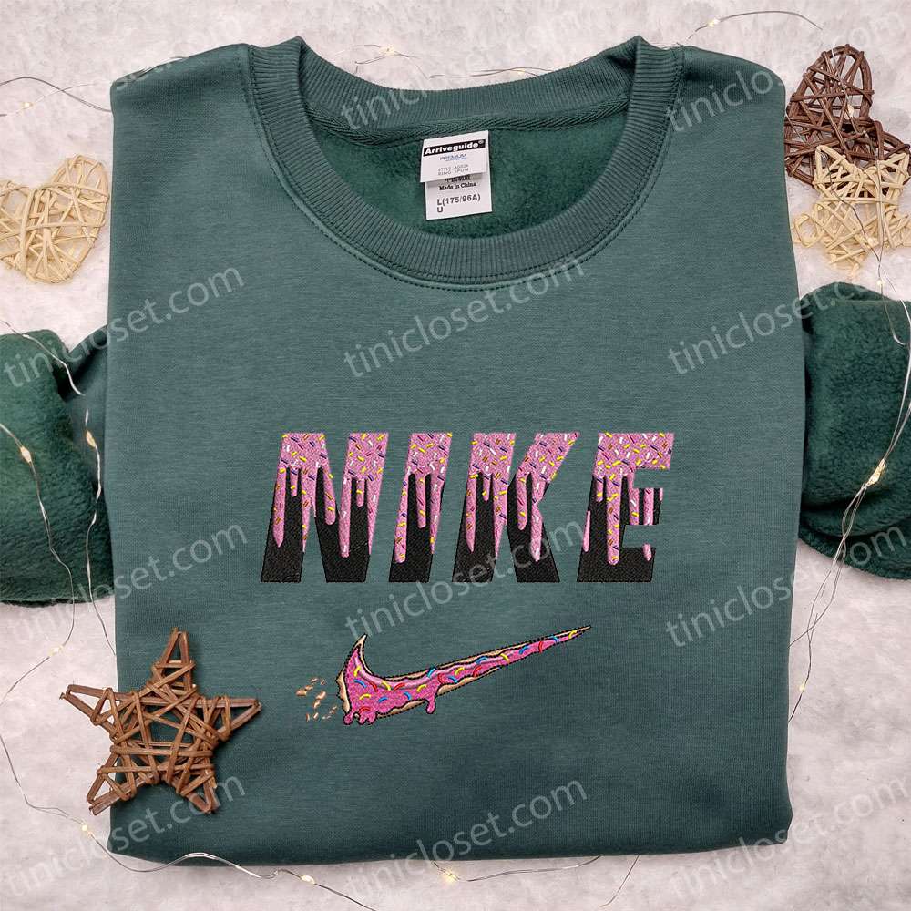 Pink Donut Nike Logo Embroidered Shirt, Nike Inspired Embroidered Hoodie, Best Gifts For Family
